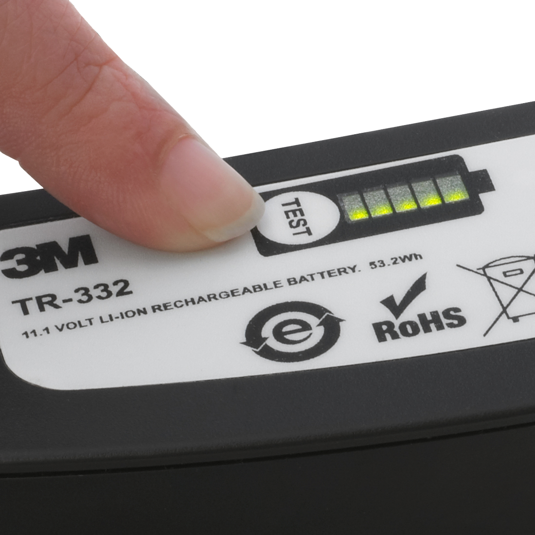 3M Versaflo 300 PAPR high capacity Lithium Ion battery, with a battery life of 8 to 12 hours. LED lights on the battery indicate its charge status, both on and off the charger – great for quick identification in emergency situations. For use with the 4-Station Battery Charger (HM5804) or Single Station Battery Charger (HM5801).