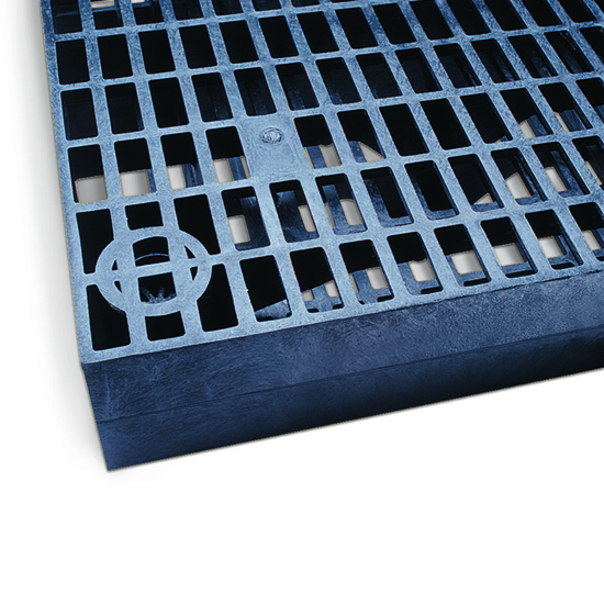 HazMat Elevation Grid Assemblies, made from sturdy, high-density polyethylene, are specifically designed for use with the DQE Standard Collection Pool and Compact Collection Pool. Wide and flat rubber feet protect pool liners and improve grid stability on uneven surfaces.