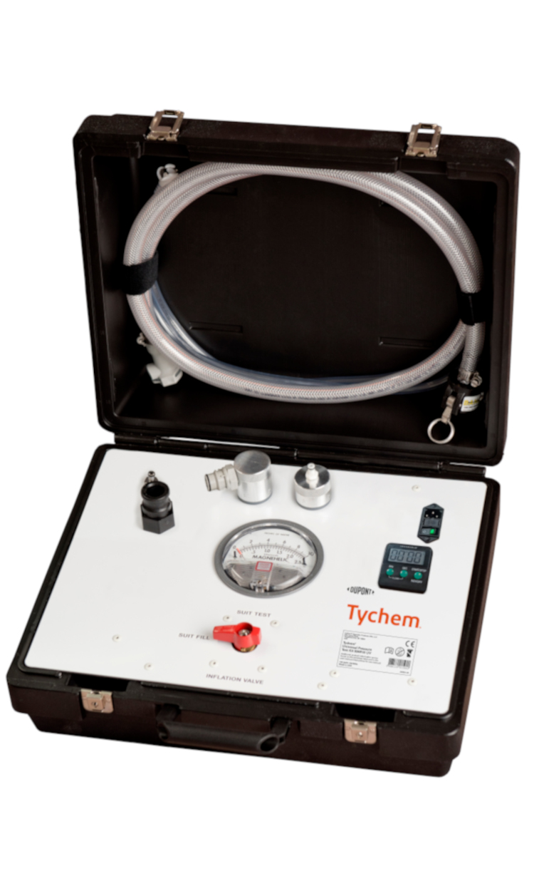 Ensure safety compliance with regular documented testing according to ASTM F 1052, Standard Test Method for Pressure Testing Vapor Protective Ensembles. All suits should be tested at receipt and during regular inspection to your department’s standards.
