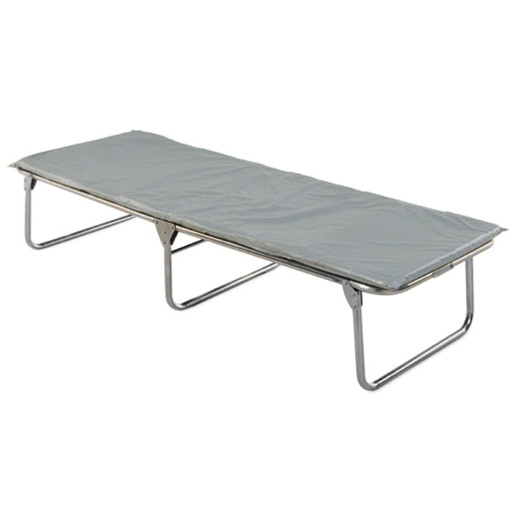 This economical cot is designed for easy storage: simply pull mattress through frame opening on the underside of the bed, and fold at hinges. Box of three.