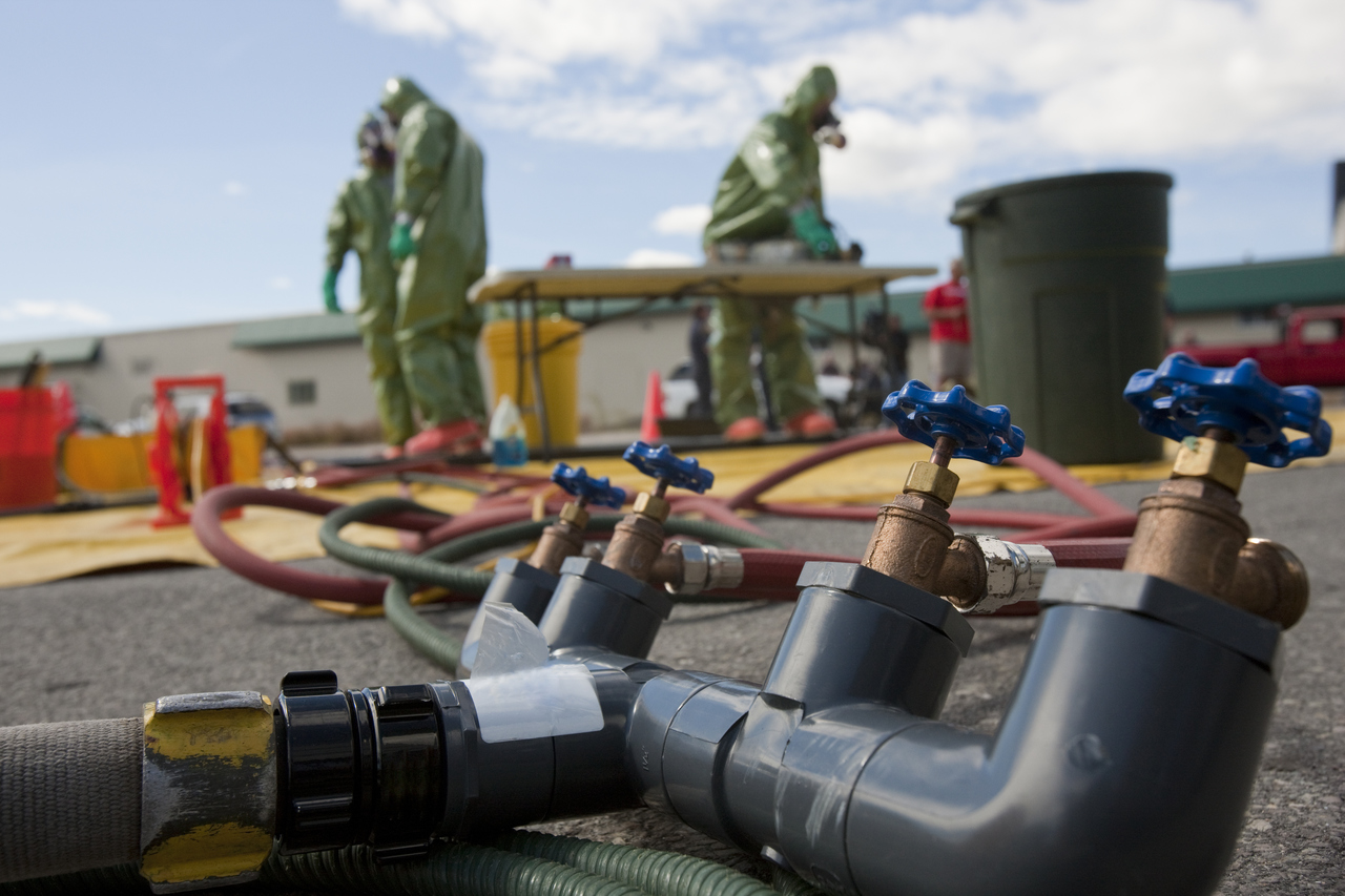 The Fire Hose Reducing Manifold reduces a 1.5″ fire hose down to four .75″ garden hose spigots.