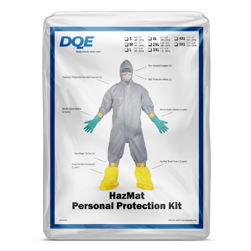 The Hazmat Personal Protection Kit contains a Lakeland ChemMax 3 Coverall, gloves, N95 protection mask, gloves, ChemTape, and Goggles. The personal protective equipment is configured all in one kit, so you have hazmat protection available at a moment’s notice. May require additional respiratory protection.