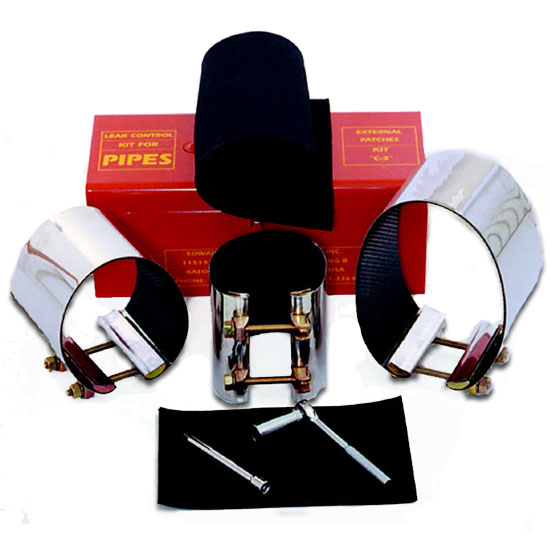 This Large Pipe Leak Kit “C-3″ is a stand by hazmat kit for your emergency response arsenal for when the inevitable leaking pipe presents itself. The Large Pipe Leak Kit by Edwards and Cromwell contains 3 large patches covering 5″, 6″, and 8” pipes. This is an essential emergency kit for large leaking pipes. The leak control kit can be utilized anywhere there is a pipe or line: in municipal departments, chemical plants, manufacturing facilities, hospitals, oil field, water and sewer treatment plants.
