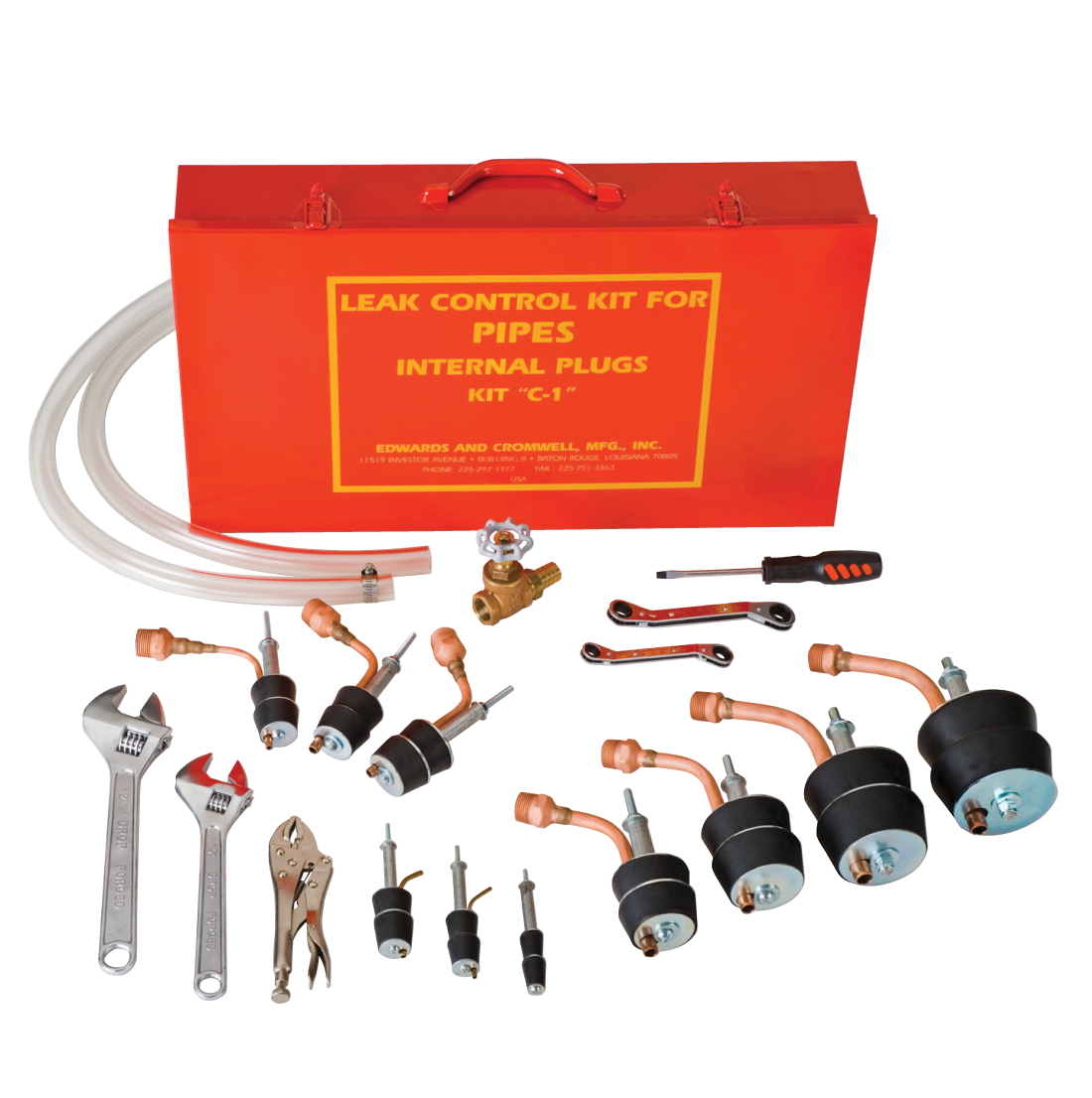 This Pipe Plugger Kit “C-1” by Edwards and Cromwell provides plugs for gas meters, tank truck valves, water pipes, and hundreds of other uses.