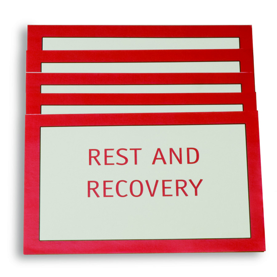 Keep Your CoreTM and create an easy to navigate rehab area with Rehab Area Signs. Rehab Area Signs are easily hung on the shelter with attached magnet clips. The pack of five, weather-resistant signs designate the following areas: Medical Monitoring, Gear Drop, Check In/Out, Rest and Recovery, and EMS Treatment.