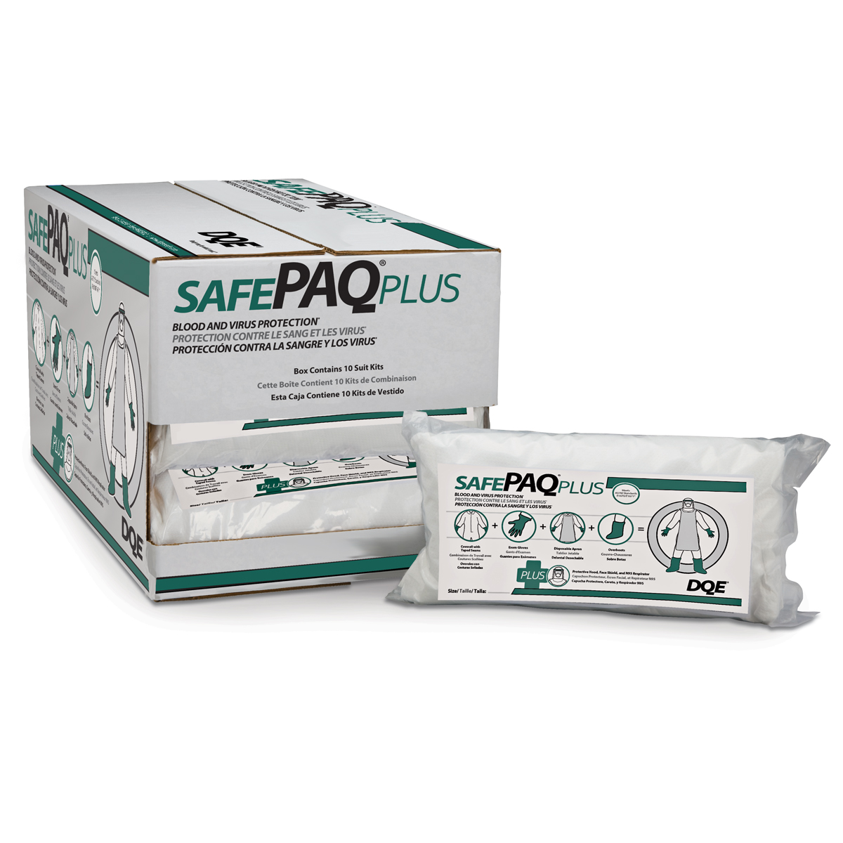 Remain fully protected when managing a crisis and providing care to those in need and prevent the transmission of infectious agents with SafePaq Plus Blood & Virus Protection Kits. The breathable coverall material meets ASTM F1670/F1671 standards for blood and viral penetration resistance.