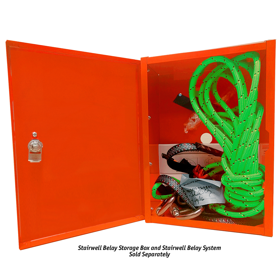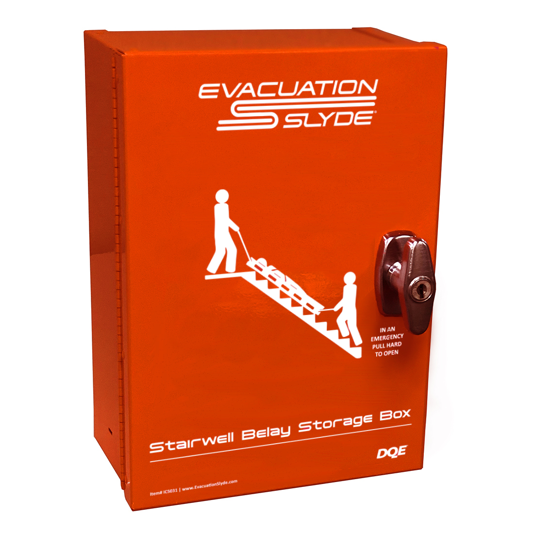 The Slyde Stairwell Belay Box is for use with the Stairwell Belay System (IC5030). Installed on the wall at the top of a flight of stairs, the Belay Box provides convenient storage for the Stairwell Belay System (IC5030). When properly installed, the included wall anchor provides a secure anchor point for the Stairwell Belay System when other anchor options such as hand railings are unavailable. Gain peace of mind by reducing the risk of injury when descending a flight of stairs with the Slyde Evacuation Sled.
