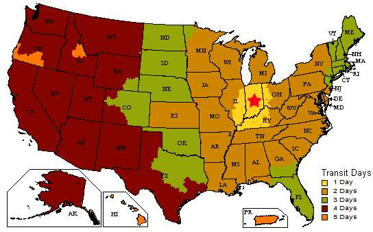 Most in-stock orders ship the next business day. DQE is located in Central Indiana, the Crossroads of America, so Ground Service for stocked products is never more than a few days away!